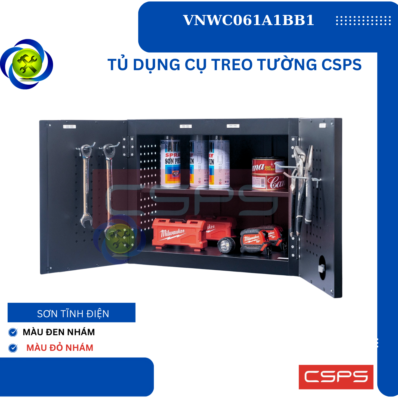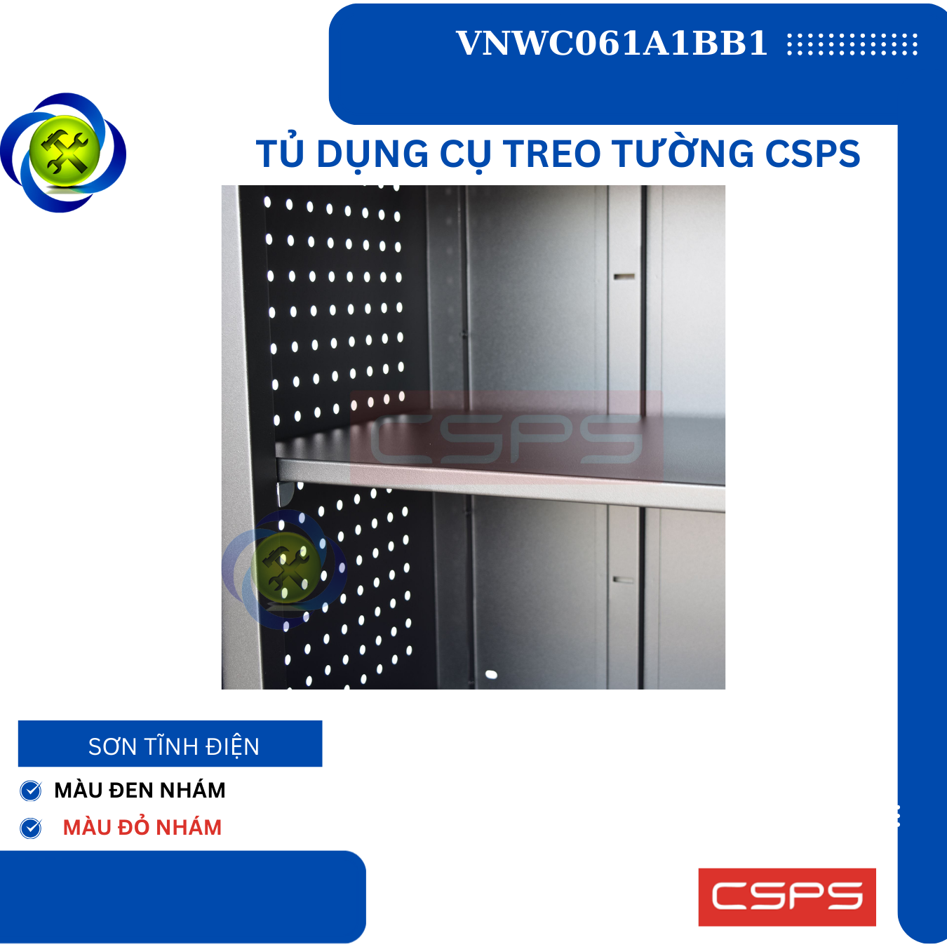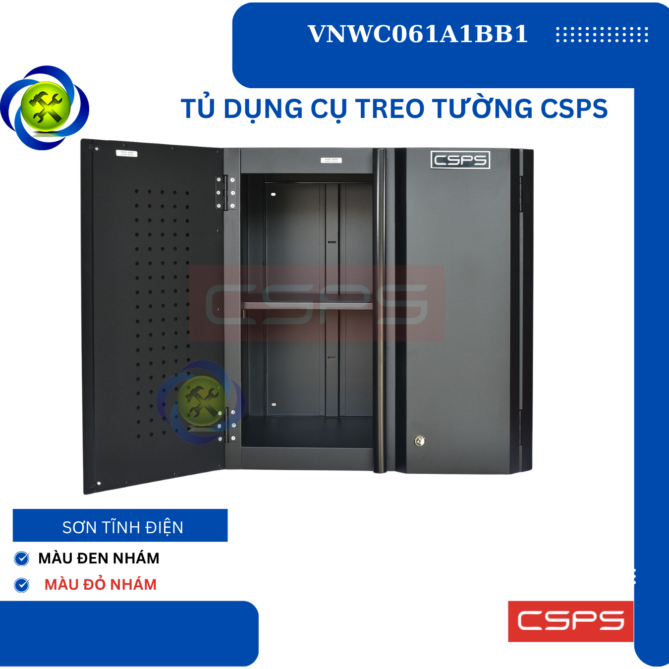 Tủ dụng cụ treo tường CSPS W61 cm - 01 ngăn là một thiết kế mới của CSPS dành riêng cho người thợ Việt Nam với các lợi ích nổi bật: / CSPS wall cabinet 61cm – 01 partition are a new design of CSPS specialized for Vietnamese with outstanding benefits: