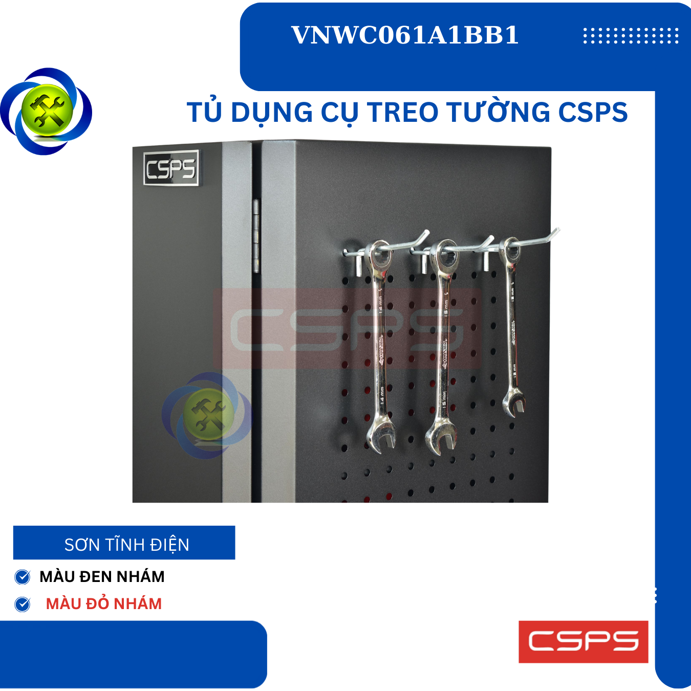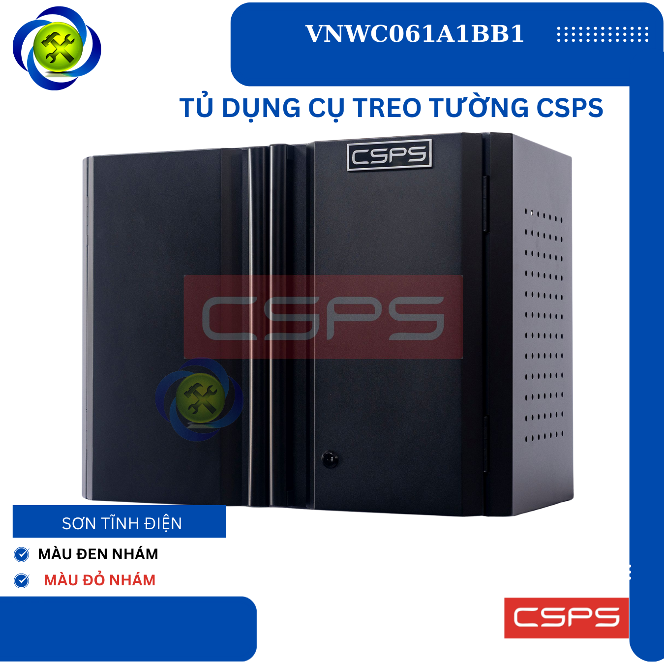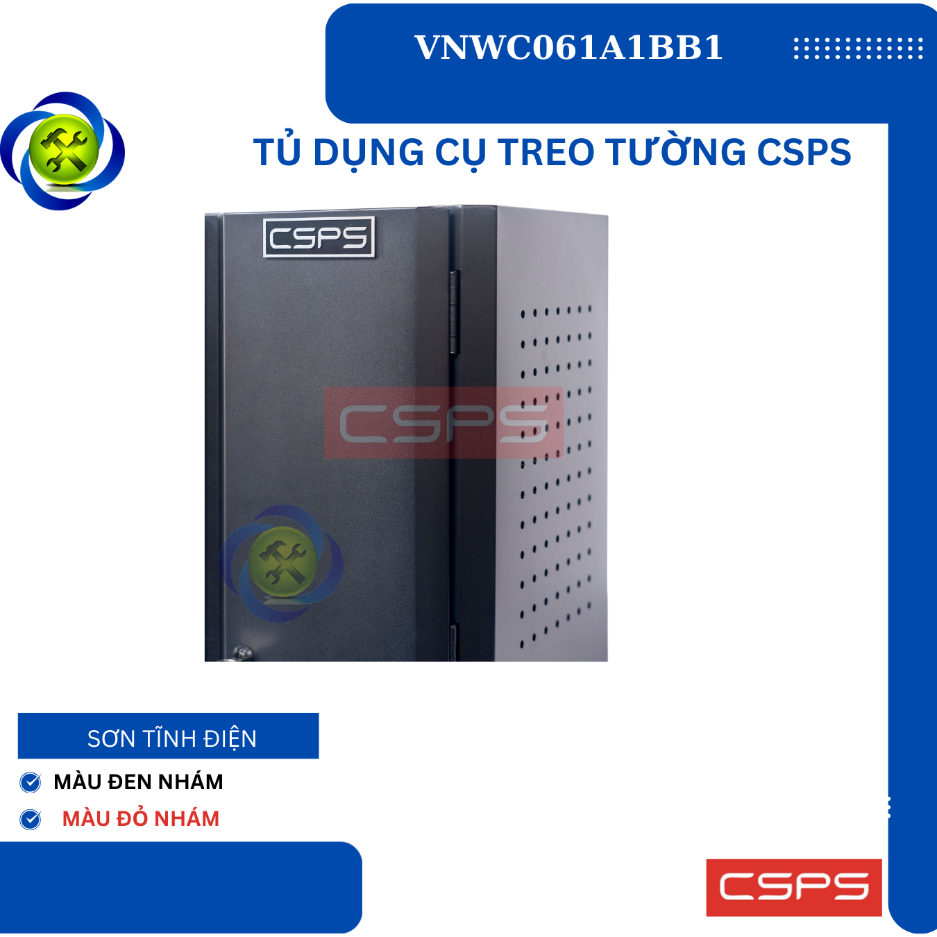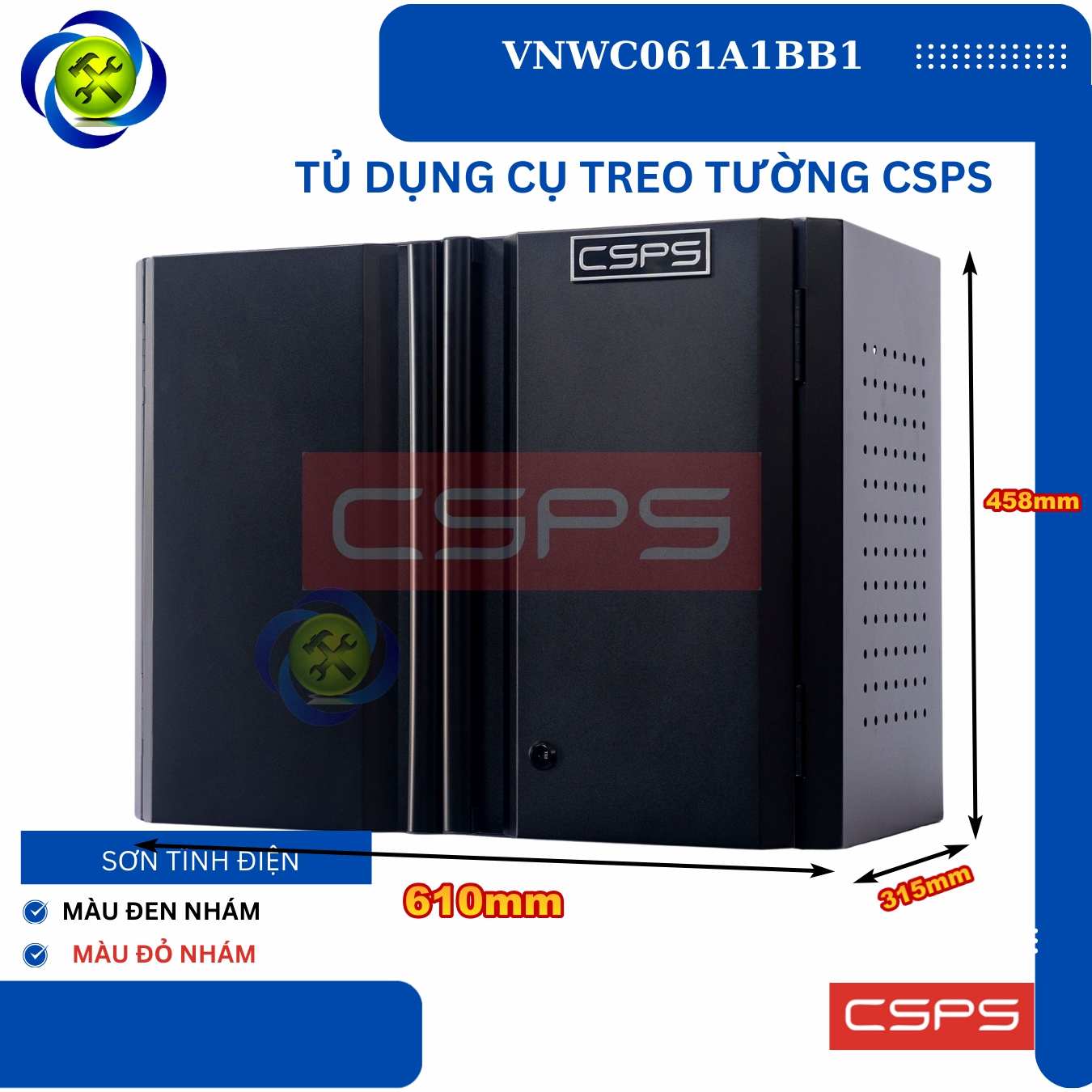 Tủ dụng cụ treo tường CSPS W61 cm - 01 ngăn là một thiết kế mới của CSPS dành riêng cho người thợ Việt Nam với các lợi ích nổi bật: / CSPS wall cabinet 61cm – 01 partition are a new design of CSPS specialized for Vietnamese with outstanding benefits: