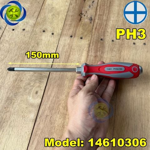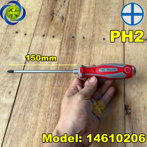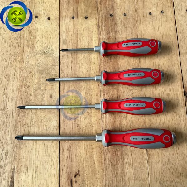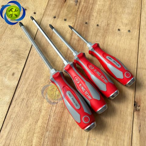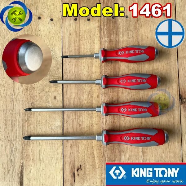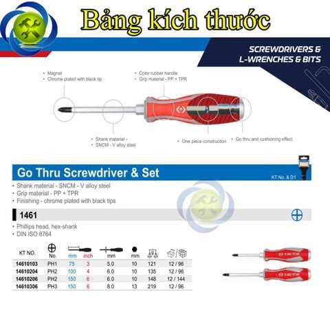 Tua vít bake đóng Kingtony 1461 cán cao su, thân thép SNCM-V đầu có từ tính, đầy đủ kích thướcTua vít bake (+) chuôi thép tròn KINGTONY dòng 1461 đầu đóng