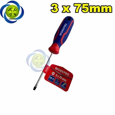 Tua vít dẹp 3x75mm tay cầm bọc cao su Workpro WP221013
