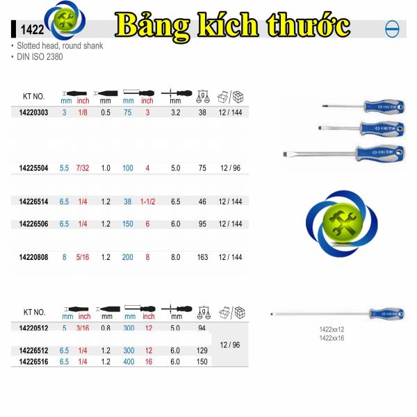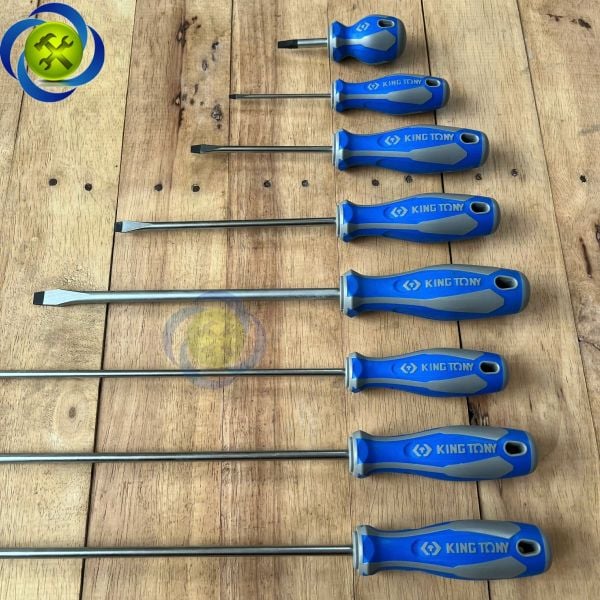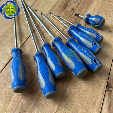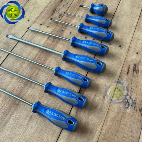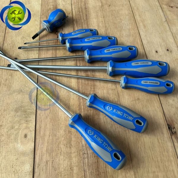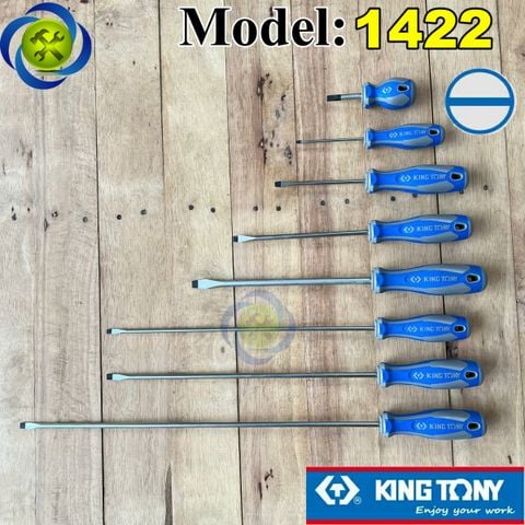 Tua vít dẹp Kingtony 1422 cán cao su, thân thép SNCM-V đầu có từ tính, đầy đủ kích thước- Vật liệu thân - thép hợp kim SNCM + V